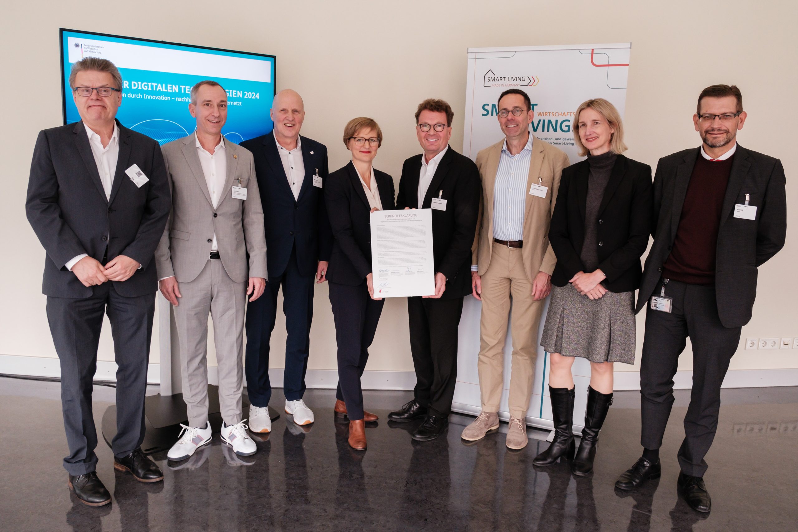 Berlin, 8 October 2024 – At the Digital Technologies Days, representatives from industry, the housing sector, science and trade, who have joined forces in the Smart Living e.V. business initiative, among others, signed a joint declaration paving the way for the innovative, complete and AI-enabled digitalization of residential buildings. This should provide decisive growth impetus for the smart living market in Germany and Europe. The SmartLivingNEXT technology program funded by the Federal Ministry for Economic Affairs and Climate Protection (German Federal Ministry for Economic Affairs and Climate Action (BMWK)) creates the conditions for this. This gives German companies and start-ups the opportunity to secure a decisive technological advantage in global competition.