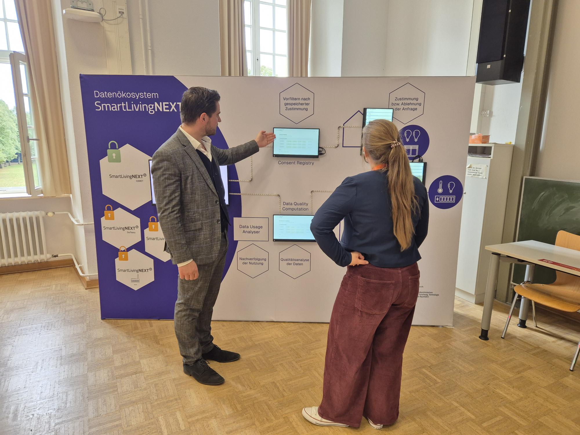 Am Ende des dritten Quartals 2025 gelingt dem Forschungsprojekt der technologische Durchbruch: Konsortialpartner Materna präsentiert auf Basis des technischen Dataspace Blueprints eine 360°-Sicht auf das SmartLivingNEXT-Ökosystem. Dadurch werden das Onboarding, der Datenkatalog und der souveräne Datenaustausch erlebbar.